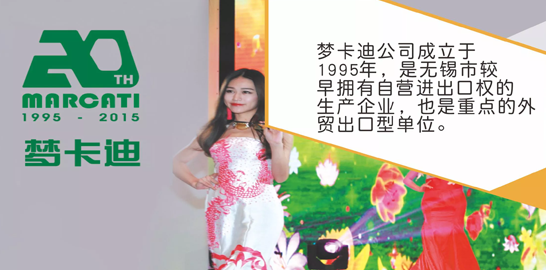 梦卡迪商标获得无锡市知名商标和江苏省著名商标,是无锡同行中很少获得此殊荣的企业,公司在2001年通过英国摩迪国际公司的审核获得ISO9001(2001)质量体系认证。公司在国内河北新河县、江苏泗洪县以及无锡地区拥有占地面积89880平方米、自建厂房车间46850平方米制造工厂。